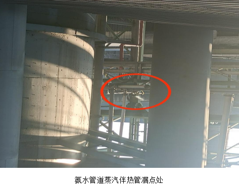 7月26日早上,丙班白班當(dāng)班脫硫巡檢正常巡檢到一期塔區(qū)時,發(fā)現(xiàn)位于高空橋架位置,尿素水解器氨氣輸送管道伴熱管閥欄處存在漏白色霧狀氣體,巡檢初步判斷為蒸汽管道腐蝕泄漏,隨即向生產(chǎn)班班長和檢修班班長匯報該情況。