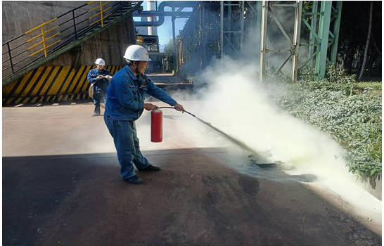 本次演練模擬場景為球團(tuán)綠化帶起火, 14:00演練正式開始。西昌藍(lán)鼎巡檢員在現(xiàn)場檢查時(shí)發(fā)現(xiàn)球團(tuán)綠化帶出現(xiàn)火情,迅速上報(bào)當(dāng)班班長。班長以最快速度將情況上報(bào)生產(chǎn)副部長,生產(chǎn)副部長按照規(guī)定的匯報(bào)機(jī)制,迅速將信息傳達(dá)至球團(tuán)主任。得到搶險(xiǎn)指示后,西昌藍(lán)鼎生產(chǎn)部立即行動(dòng),有條不紊地組織人員疏散,對(duì)現(xiàn)場進(jìn)行了嚴(yán)格的警戒隔離,確保周邊人員的安全。同時(shí),各部門迅速組織力量,憑借嫻熟的技能和豐富的經(jīng)驗(yàn),將火情進(jìn)行了有效撲滅。